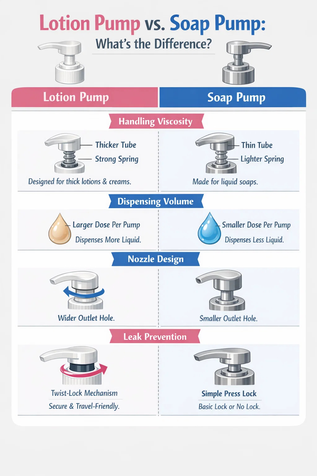 Caidéal Lotion: Tá sé deartha chun lóiseanna tiubh, slaodach, uachtair, nó oiriúntóirí a láimhseáil. Is gnách go mbíonn a fheadán súchán níos tiús, agus tá cumhacht brú níos láidre ag an earrach inmheánach, rud a ligeann dó leachtanna fiú an-tiubh a tharraingt suas.